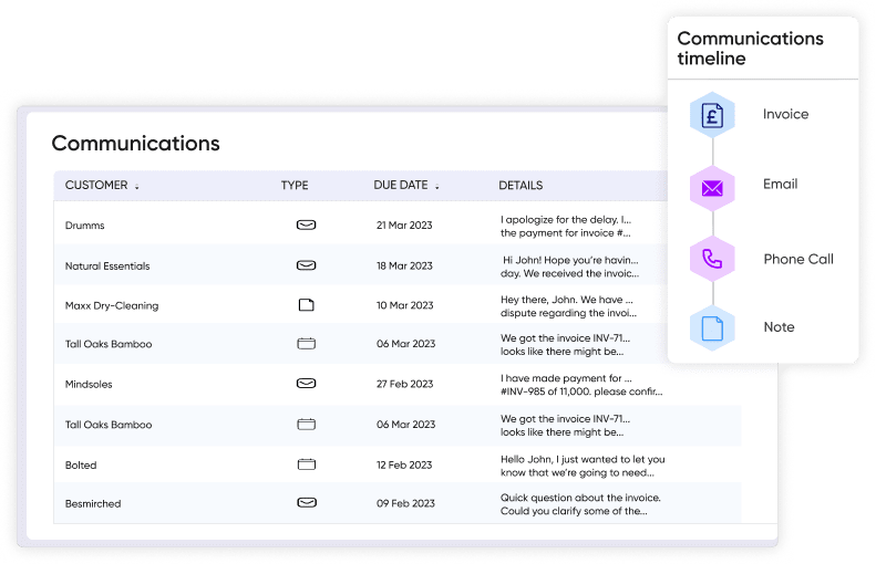 Submit, track, follow up, and reconcile receivables — all in one connected platform that unifies sales and finance to improve collection efficiency.